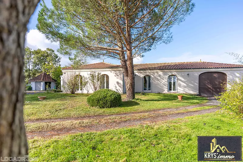 Pour tout renseignement ou visite, veuillez contacter Christine Boussaha-Iod au 06.85.98.96.11 EN EXCLUSIVITÉ Belle maison de plain-pied d'environ 135m² avec 2 chambres et un bureau, le tout sur un terrain de 2 085 m² entièrement clôturé. La maison se compose d'une cuisine ouverte sur un grand salon/séjour d'environ 75m² avec son insert donnant accès à une terrasse couverte ainsi qu'à un cellier/buanderie, puis un dégagement permet de rejoindre 2 chambres avec placards (11 et 17 m²), un bureau (7,5m² avec placard), une salle de bains complète (douche et baignoire) ainsi qu'un wc indépendant. Un garage attenant pouvant être transformé en habitation d'environ 44 m² vient compléter ce bien. Divers : double vitrage PVC, volets roulants manuels PVC, fibre, chauffage électrique dans les chambres, électricité 2023, fosse septique, arbres fruitiers, parking en enrobé, 2 réservoirs d'eau, abris bois, wc extérieur, alarme. VIDÉO DISPONIBLE SUR DEMANDE Les informations sur les risques auxquels ce bien est exposé sont disponibles sur le site Géorisques : www.georisques.gouv.fr