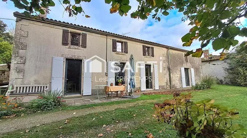 Située dans un environnement calme, verdoyant et sans vis-à-vis, cette maison en pierre de 135 m² offre un fort potentiel après rénovation. Elle comprend une vaste pièce de vie de 50 m² avec cuisine et cheminée, ainsi qu’une pièce de 30 m² avec accès indépendant, idéale pour un bureau, une suite parentale ou une activité professionnelle. Le rez-de-chaussée dispose également d’une salle d’eau, de toilettes, d’un débarras, d’un garage et d’une chaufferie. À l’étage, un palier pouvant servir de bureau ou chambre dessert deux chambres. À l’extérieur, une terrasse couverte et un terrain arboré de plus de 5000 m² complètent l’ensemble. Le bien nécessite certains rafraîchissements (électricité, cuisine, salle d’eau, escalier), mais bénéficie déjà de plusieurs améliorations récentes : pompe à chaleur installée en 2022, toiture refaite en 2017, menuiseries double vitrage changées en 2015 et volets neufs en 2025.