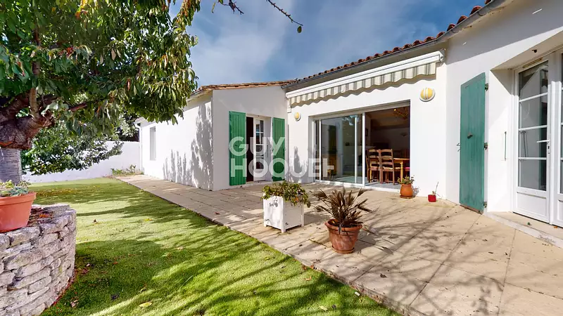 Laissez-vous séduire par cette maison de plain-pied de 135 m², édifiée sur un terrain clos de murs de 505 m², idéalement située dans un quartier calme et recherché d'Ars-en-Ré. Composée de 5 pièces, dont 3 chambres, elle offre un bel espace de vie pour accueillir famille et amis. Côté confort, la maison dispose d'une salle de bain, d'une salle d'eau, de deux WC, ainsi que de fenêtres en PVC double vitrage et d'un vide sanitaire, garants d'une bonne isolation. Construite en 1998, cette propriété présente un beau potentiel : quelques travaux de rafraîchissement permettront de la personnaliser et d'en révéler tout le charme. A proximité immédiate de l'école primaire Brunet, du marché et du centre du village, elle réunit emplacement idéal et qualité de vie. Un bien rare sur le marché, à découvrir sans tarder avec votre agence Guy Hoquet Ars-en-Ré. (5.88 % honoraires TTC à la charge de l'acquéreur.) Tifany SAMOYAULT (EI) Agent Commercial - Numéro RSAC : - .