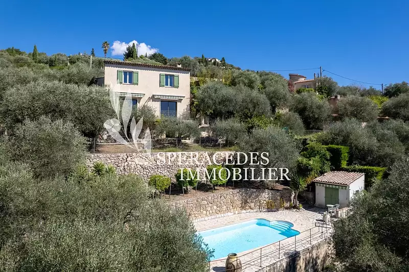 Cabris, dans un quartier recherché à pied du village, cette charmante maison traditionnelle d’environ 135 m² séduit par sa vue panoramique exceptionnelle sur la mer, le lac de Saint-Cassien et le massif de l'Esterel.