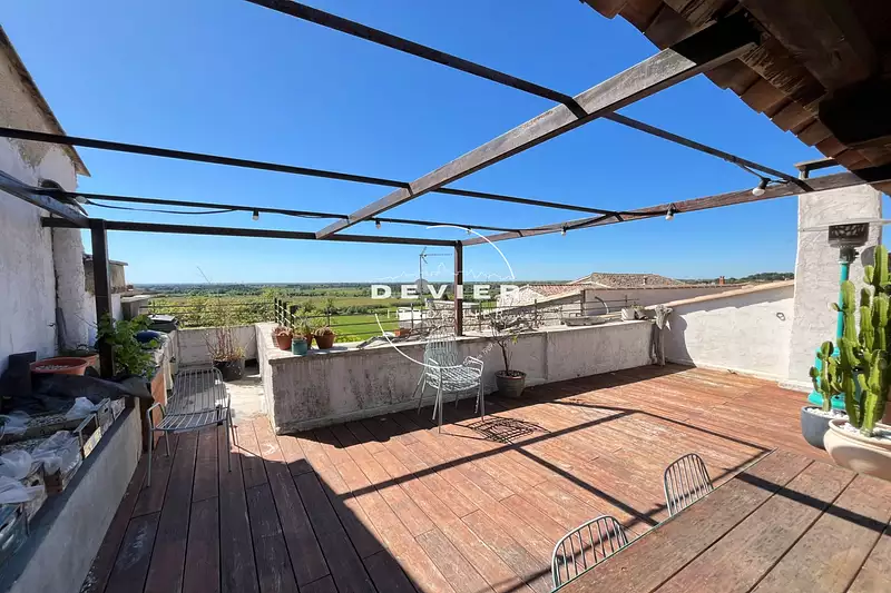 Au rez de chaussée , vous trouverez un petit garage , une buanderie , un dégagement avec placards ,un grand salon séjour vouté avec pierres apparentes et cheminée , ainsi qu'une vaste cuisine indépendante avec acces direct à une agréable terrasse de 10 m² . A l'étage ; la partie nuit se compose de trois chambres,dont une trés grande et traversante avec dressing ,d'une belle salle de bains avec douche et baignoire... le dernier étage offre une pièce polyvalente( chambre , d'amis, bureau , espace de détente équipée d'une cuisine avec salle d'eau privative donnant sur une trés grande terrasse bois de 35 m² exposée plein sud avec vue panoramique sur la campagne jusqu'au littoral . Beaucoup de charme et de caractère ! Pour tout renseignement complémentaire ou visite , contacter : DEVIER IMMOBILIER 0467862870