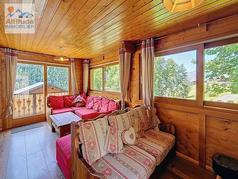 Composition : Chalet 6 pièces, 5 chambres, 3 salles de douche, 1 salle de bain, 2 toilettes, une buanderie, un local à ski.