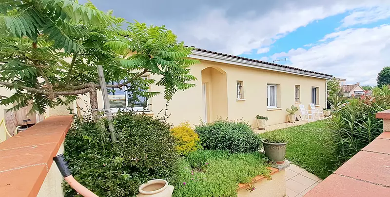Gaillac à 5mins en voiture du centre ville secteur calme et résidentiel Maison en plain pied Type 5 de 135m² avec garage et belle terrasse intimiste sur une parcelle de terrain de 522m² clôturée avec un puits. Composée d'une grande entrée avec un vestiaire-placard et un wc, une grande pièce à vivre (51m²) avec sa cuisine ouverte équipée, une suite parentale (dressing et salle d'eau) + trois chambres supplémentaires et une salle de bain, deux wc et un garage attenant avec cellier -buanderie, Ses ++ : double vitrage volets roulants électriques sur l'ensemble, clim réversible pompe à chaleur, bonne isolation, aucun travaux a prévoir.