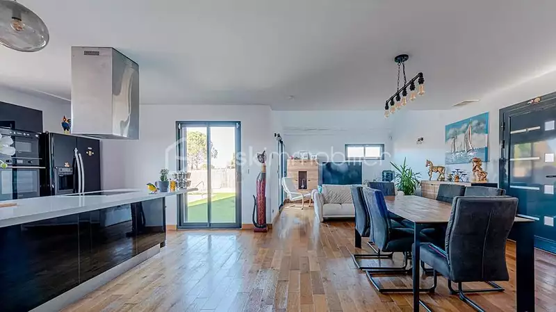 Avec ses 135 m², elle offre un espace de vie convivial grâce à une cuisine ouverte sur un salon séjour spacieux.