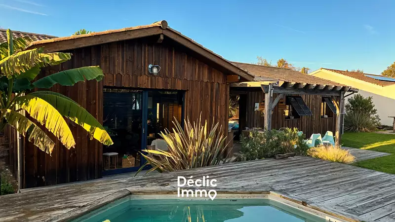 Découvrez cette charmante maison de plain-pied de 135 m² située au Porge, à seulement 4 minutes des écoles et du centre-ville. Nichée dans un environnement verdoyant, elle offre un cadre de vie idéal pour ceux qui recherchent confort, luminosité et espace. Un espace de vie chaleureux et convivial : L'entrée s'ouvre sur une spacieuse pièce de vie traversante de 45 m², comprenant une salle à manger chaleureuse agrémentée d'un poêle à bois, ainsi qu'un salon baigné de lumière. Attenante à la salle à manger, la cuisine semi-ouverte séduit par sa fonctionnalité et bénéficie d'un accès direct à la buanderie. Depuis la salle à manger, vous accédez à une suite parentale avec dressing, indépendante du reste de l'espace nuit. Côté nuit, un dégagement dessert un WC indépendant, une salle d'eau, ainsi que trois chambres de 11 m², toutes équipées de placards. Un espace extérieur pensé pour la détente : Vous profiterez d'un jardin arboré d'environ 950 m² sans vis-à-vis, d'une grande terrasse conviviale, ainsi que d'une piscine hors-sol accompagnée d'une douche extérieure. Un atelier de 11 m² et deux cabanons complètent les prestations et offrent des espaces de rangement supplémentaires. La parcelle, entièrement clôturée, propose également plusieurs emplacements de stationnement. Les points forts: Maison de plain-pied Aucun travaux à prévoir Système d'alarme Terrasse et piscine sans vis-à-vis Exposition Sud/Ouest Infos pratiques: Commerces, écoles à 5 minutes en voiture Pistes cyclables Ligne de bus 4210 vers Bordeaux Transport scolaire Aéroport Mérignac à 40 min - Gare Saint-Jean à 1 h Réf 2223. DECLIC IMMO 33 DPE : C Les informations sur les risques auxquels ce bien est exposé sont disponibles sur le site Géorisques : www.georisques.gouv.fr. Annonce proposée et rédigée sous la responsabilité éditoriale de MONÉ Sophie - 06 73 59 56 31 - - Ville du greffe : BORDEAUX Honoraires : 15 000 € TTC (3,85 %) inclus charge acquéreur (390 000 € hors honoraires) Prix moyens des énergies indexés sur les années 2021 2022 2023 (abonnement compris). Montant estimé des dépenses annuelles d'énergie pour un usage standard : entre 1 290 € et 1 800 € par an.