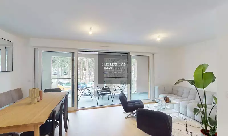 Découvrez cette maison neuve en hyper centre avec une vue dégagée sur la Pinède. Description: un séjour avec cuisine et salon ouvrant sur une terrasse exposée plein Sud.
