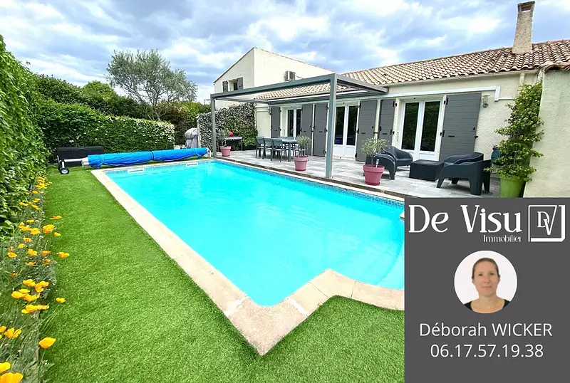 MONTARNAUD Vidéo disponible Venez découvrir cette belle villa indépendante, sur une parcelle de 524m². Entièrement climatisée, au calme et proche de toutes commodités, vous profiterez de 135m² habitables. La maison bénéficie d'aménagements très soignés et de qualité offrant un cadre de vie des plus agréables. Au rez-de-chaussée, elle se compose d'un séjour lumineux de 40m2 ouvert sur l'espace piscine, d'une cuisine fermée entièrement équipée, d'une arrière-cuisine, d'une buanderie et d'un bureau. La partie nuit comprend deux chambres avec leurs placards et leurs salles de bain ainsi qu'un WC séparé. Au R+1 nous trouvons deux chambres supplémentaires et une salle d'eau avec WC. A l'extérieur, vous pourrez profiter en toute tranquillité de la terrasse ombragée par sa pergola électrique, du jardin arboré et de la piscine chauffée 8mX4m sans vis-à-vis. Vous aurez la possibilité de garer deux voitures sur la parcelle et une dans le garage. Des combles aménageables donnent la possibilité de créer si besoin une pièce supplémentaire. Vous serez charmé par les nombreuses prestations de qualité proposées : climatisation réversible, pompe à chaleur, pergola électrique, double portail électrique et domotique. Venez vite découvrir cette belle et rare opportunité ! Vidéo disponible sur demande. Pour tout renseignement contactez-nous au O6.17.57.19.38