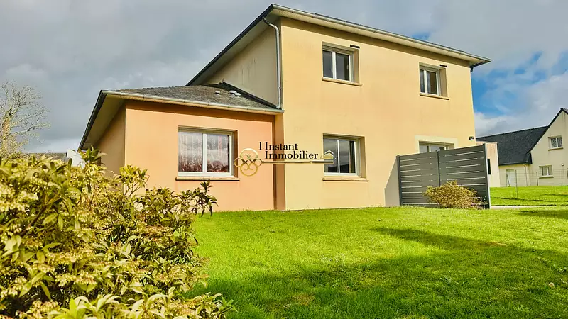 Exclusivité L'Instant Immobilier ? Plougonven Venez découvrir cette belle maison contemporaine de 135 m², située dans un quartier calme et recherché de Plougonven. Spacieuse, lumineuse et idéale pour une famille, elle offre un agencement confortable et fonctionnel. Au rez-de-chaussée, vous trouverez une grande pièce de vie lumineuse avec cuisine ouverte, aménagée et équipée, parfaite pour profiter du quotidien. Deux chambres ainsi qu'une salle d'eau complètent ce niveau, offrant une vraie vie de plain-pied. A l'étage, la maison propose trois chambres supplémentaires ainsi qu'une salle de bains, permettant à chacun de bénéficier de son espace. Un grand garage vient parfaire l'ensemble, idéal pour stationner, bricoler ou stocker. Le tout est implanté sur une jolie parcelle de 988 m2, agréable et facilement aménageable selon vos envies. Une maison récente, familiale et rare sur le marché : une opportunité à saisir sans attendre ! (5.77 % honoraires TTC à la charge de l'acquéreur.)