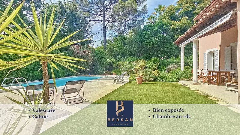 BERSAN Immobilier vous propose cette villa lumineuse, nichée dans un écrin de verdure, au coeur du quartier prisé de Valescure, à quelques minutes seulement des golfs et des commodités Dès l'entrée, les volumes généreux comprenant un vaste séjour, baigné de lumière, qui se prolonge par de larges ouvertures sur l'extérieur, créant une continuité naturelle vers la terrasse couverte et le jardin La cuisine semi-ouverte est aménagée et équipée ouvert également sur la terrasse. La villa dispose d'une chambre de plain-pied avec salle d'eau et à l'étage, trois chambres lumineuses complètent l'espace nuit, accompagnées d'une salle de bains et dressing. A l'extérieur, le jardin arboré et parfaitement entretenu accueille une piscine, idéale pour profiter des journées ensoleillées La terrasse couverte devient un lieu de vie à part entière, propice aux repas d'été et aux moments de détente Un garage fermé et un abri voiture viennent parfaire l'ensemble, assurant praticité et rangement. Pensée pour conjuguer confort, luminosité et sérénité, cette propriété séduira les amateurs de calme et de nature tout en restant proche des activités et services Visite virtuelle disponible sur demande L'équipe BERSAN Immobilier se tient à votre disposition pour tout complément d'information et pour organiser votre visite