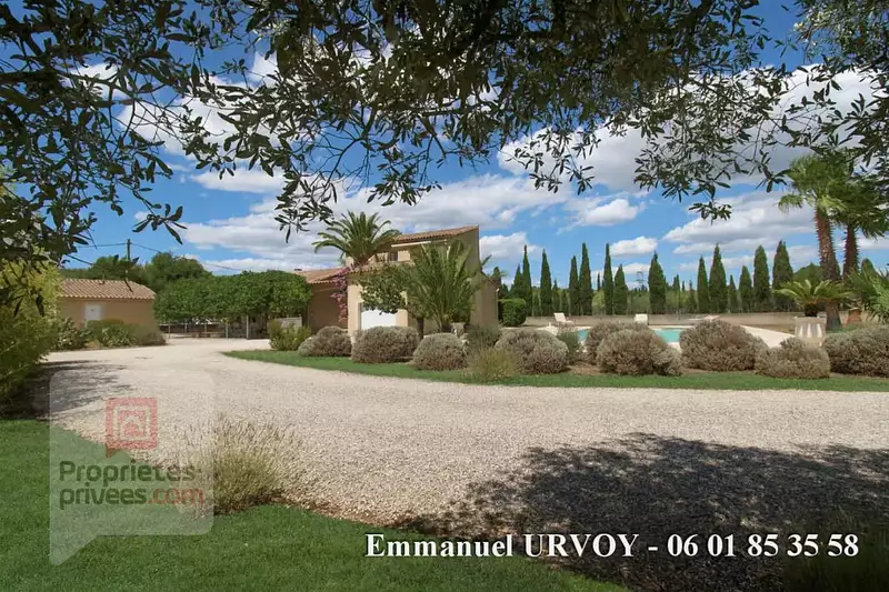 Au RdC: Entrée, double séjour avec cheminée (foyer fermé), ouvert sur une cuisine équipée et son espace repas; 2 chambres spacieuses; SdE et Wc. A l'étage: chambre parentale, avec son solarium offrant des vues sur les Alpilles et le Mont Ventoux; salle de bains et toilette. Cette villa développant plus de 200 m² de surfaces utilisables dont 135 m² habitables, comprend de nombreuses dépendances : terrasse avec pergola et son ombrage naturel, garage, atelier, abri voiture .... jardin paysagé de plus de 3700 m² et son espace piscine (12x5 avec système automatique) exceptionnel!