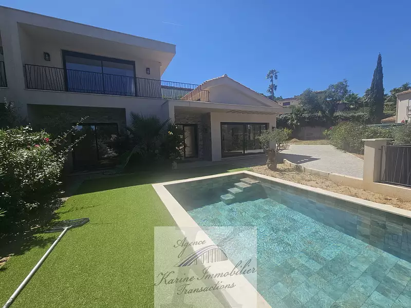 Proche du centre-ville et des plages au calme, sur un terrain de 700 m2, villa neuve jumelée d'un côté de 135 m2 de 6 pièces comprenant une entrée avec placard, un grand salon/séjour donnant sur la terrasse et piscine, une cuisine américaine, 3 chambres, une salle de douche et un wc séparé avec lave mains.