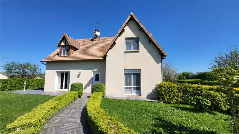 Dans un quartier au calme, et proche de quelques commerces, belle maison d'environ 135 m² bien entretenue comprenant : belle entrée avec escalier, séjour avec cheminée équipée d'un insert ouvert sur cuisine aménagée et équipée (réfrigérateur, hotte aspirante, plaque de cuisson), une chambre avec salle de douche à l'italienne, wc séparés, bureau ou chambre avec placards ; à l'étage : pièce-mezzanine surplombant l'entrée, trois chambres, wc séparés, grande salle de bains avec baignoire et douche), placards et radiateurs sèche serviettes ; chauffage au fioul + cheminée ; Volets roulants; sous-sol complet avec adoucisseur d'eau comprenant buanderie avec point d'eau, garage, cave à vin l'ensemble sur 1030 m² de jardin avec terrasse. Les informations sur les risques auxquels ce bien est exposé sont disponibles sur le site Géorisques : www. georisques. gouv. fr