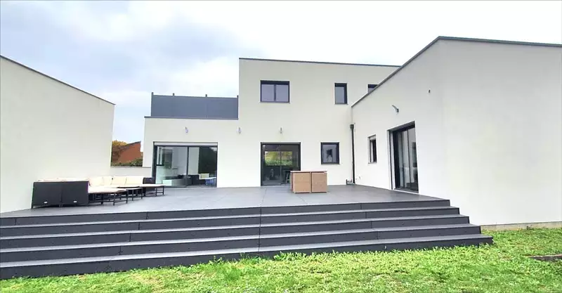 EXCLUSIVITE : Magnifique maison contemporaine construite en 2012, au calme.Une maison clé en main !Au rez-de-chaussée : entrée spacieuse avec dressing, grand espace de vie lumineux de plus de 60 m² avec cuisine récente (Schmidt) avec accès direct à une terrasse de 90 m², buanderie.une suite parentale avec salle de bains et dressing.A l'étage : un palier bureau, 2 chambres avec, pour chacune : dressing et terrasse privative.Une seconde salle de bains (baignoire et douche à l'italienne), wc.Chauffage par le sol : rdc et étage.Stationnement pour 4 véhicules.Volets électriques sur l'ensemble des ouvertures.Maison saine et performante : DPE : CUn confort de vie moderne et une belle optimisation des volumes ..Un bien rare sur le marché, à visiter sans tarder !Prix honoraires de négociation inclus : 428.000 euros + frais de notaire