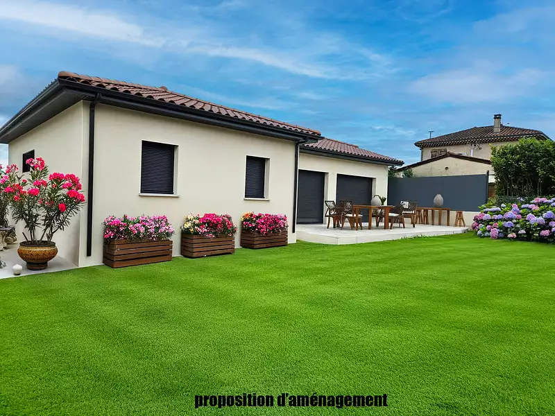 Maison contemporaine plain pied neuve avec des prestations haut de gamme - 136m2 + garage isolé et carrelé de 25m2 sur un terrain de 528m2 plat et clos.