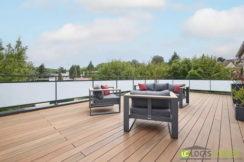 - Au dernier niveau : un spacieux double séjour baigné de lumière, une seconde chambre, une salle d'eau, une cuisine indépendante, des WC séparés, ainsi que deux magnifiques terrasses : l'une exposée plein sud, entourée de verdure, parfaite pour les moments de détente, l'autre exposée nord, idéale pour profiter de la fraîcheur en été.