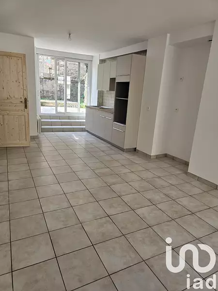 iad France - Christel Velly vous propose: MAISON DE VILLAGE DANS BOURG AVEC COMMERCES ET ECOLE. Elle offre cuisine amenagée ouverte sur séjourdonnant accés a une cour, wc. A l'étage : vaste salon lumineux. au 2 éme : 3 chambres, salle de bains avec wc. cave voûtée. garage. l'ensemble sur 143m² environ.