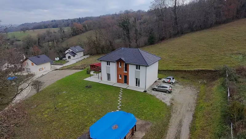 Située sur les hauteurs de Saint-Girod, cette maison de 140 m² habitables offre un cadre agréable avec une belle vue dégagée. Construite en 2019, elle bénéficie de très bonnes prestations, tant au niveau de la construction que des finitions. Vous êtes idéalement situés : à seulement 10 minutes d'Aix-les-Bains et 30 minutes d'Annecy.