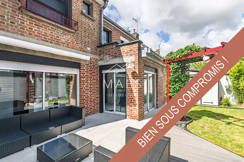 MARCQ EN BAROEUL - BOURG Dans un agréable quartier résidentiel, à proximité des commerces, écoles & crèches, transports, axes routiers, votre agence MAES IMMOBILIER a le plaisir de vous présenter cette charmante maison semi-individuelle des années 50 d’environ 136 m2 habitables avec un joli jardin + terrasse bien exposés, grand garage et stationnement privé devant la maison. Vous apprécierez ses volumes et prestations de qualité : Une belle pièce de vie de près de 45 m2 incluant la cuisine semi-ouverte, le tout donnant sur le bel espace extérieur sans vis à vis : un jardin et une terrasse ensoleillés. Belle cuisine moderne équipée, fonctionnelle et conviviale grâce à son espace repas. Une buanderie / arrière-cuisine ainsi qu'un garage de 20 m2 complètent le rez-de-chaussée. WC indépendant. Au 1er ’étage, le large palier (idéal salle de jeux ou bureau) dessert une chambre parentale avec dressing + rangements, une salle de bain confortable avec baignoire d'angle, douche et double vasque. Trois autres spacieuses chambres complètent l'étage. Second WC. Vous pourrez profiter d’agréables moments au calme dans le jardin. Cette maison est chaleureuse et bien entretenue, une vraie maison de famille ! À visiter sans tarder !