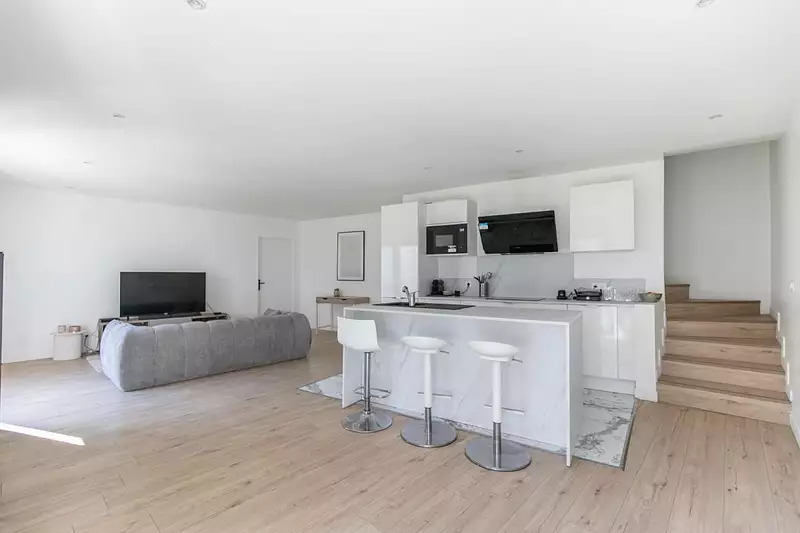Au rez-de-chaussée : séjour double spacieux et lumineux avec cuisine équipée