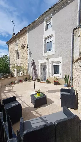 Maison en pierre rénovée composée au rez de chaussée d'un salon, d'une salle à manger, d'une cuisine équipée/aménagée, une salle d'eau, WC. 1er étage : deux chambres. 2Ème étage : deux chambres, bureau (mezzanine), WC avec lave-mains. Cave, trois garages, un atelier, un chalet, jolie cour fermée. Terrain arboré (avec chalet) et potager non attenants d'environ 3300 m² Contactez Sao PIRES au 06 86 54 47 74, AXO - L'immobilier Actif, Agent Commercial RSAC 450.702.493 Angoulême. Plus d'informations sur (réf. 85002111849) et . Honoraires : 3,23 % TTC inclus charge acquéreur (154 900 € hors honoraires). Les informations sur les risques auxquels ce bien est exposé sont disponibles sur le site Géorisques : https://www.georisques.gouv.fr/