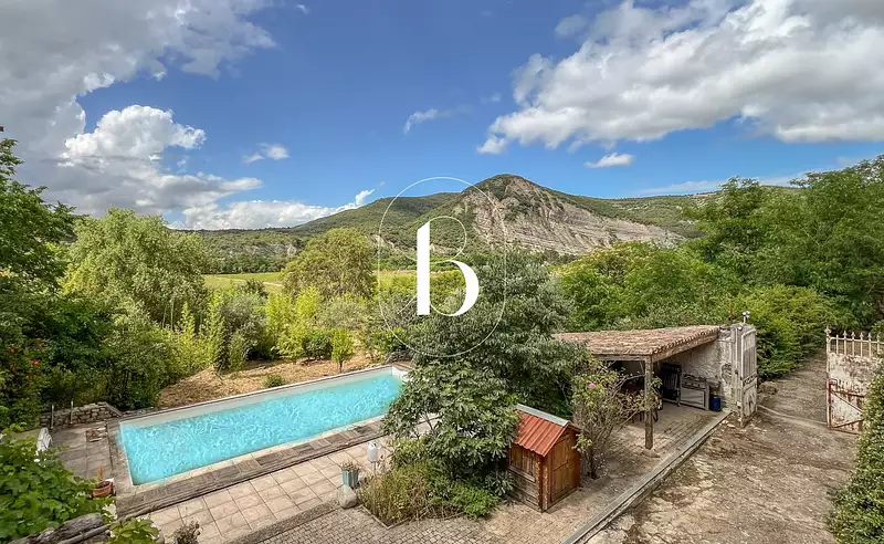 Vente exclusive sur Vallon Pont D'Arc. Porte d'entrée des Gorges de l'Ardèche, à 2 pas du majestueux Pont d'Arc et de la Grotte Chauvet 2, réplique de l'originale classée au Patrimoine Mondial de l'UNESCO, Vallon Pont d'Arc fait partie des villages incontournables d'Ardèche Une vue dégagée avec la proximité de magnifiques lieux de baignades dans la rivière l'Ardèche avec plage privative. Venez visiter cette Propriété idéalement implantée au calme, sur environ 3630m² de terrain en partie en zone constructible (sous réserve des autorisations d'urbanisme). Un terrain trés joliment arboré d'arbres fruitiers : plaqueminier, oliviers, mûriers, noyers, poiriers mais également d'acacias, de mimosas, de la vigne L'accés principal à la Propriété s'effectue par une confortable zone de parking par un authentique portail en fer forgé desservant une cour intérieure avec une piscine de 12 5m qui nécessiterait des travaux de rénovation (cf devis sur demande). Cette ancienne ferme agricole crépie en pierre offre environ 140m² de surface habitable à rafraîchir et à rénover en partie, à savoir : Au 1er étage, par un balcon avec vue exceptionnelle, une belle pièce à vivre avec cuisine équipée ouverte sur une salle à manger de 40m², une chambre ou un salon de 27m², une salle d'eau de 5,70m², une chambre de 10m², un toilette, une buanderie, un salon annexe avec poêle à bois de 26m². Au 2ème étage, une petite mezzanine de passage desservant une chambre dortoir mansardée de 16,70m² (surface utile de 26,40m²) Au même niveau que le balcon, une maison annexe à rénover entièrement comprenant 2 pièces à rénover avec toilettes, le tout pour environ 28m². Côté pratique, de confortables dépendances à exploiter pour environ 255m² comprenant un ensemble de caves, un atelier d'environ 75m², un ancien chais de 55m² avec cuves et garage de 15m². Un chauffage central avec radiateurs en fonte et poele à bois. La production en eau chaude par ballon solaire. Assainissement collectif. A proximité des commerces, écoles et de toutes commodités... C'est un site exceptionnel à découvrir toute l'année à 5 minutes du village de Vallon Pont d'Arc : l'été pour la baignade avec la plage surveillée, l'automne à l'occasion du Marathon international des Gorges de l'Ardèche, l'hiver au calme, ou au printemps quand la nature reprend des couleurs ! Votre conseiller Julien BOTELLA (0678945908). Honoraires à charge du vendeur. Une vente sélectionnée par Botella et fils immobilier à Barjac. Réf. 10575