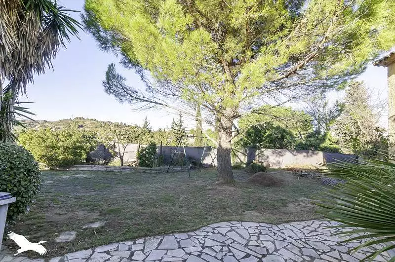 Villa plain pied de 137m² habitables avec jolie vue, édifiée sur 1162m² de terrain arboré : séjour salon avec cuisine ouverte équipée accès à la terrasse, couloir, grand cellier, salle de bains, wc, salle d'eau, 5 chambres, piscine sans vis à vis, abris de jardin, carport, climatisation, du potentiel pour diverses possibilités...