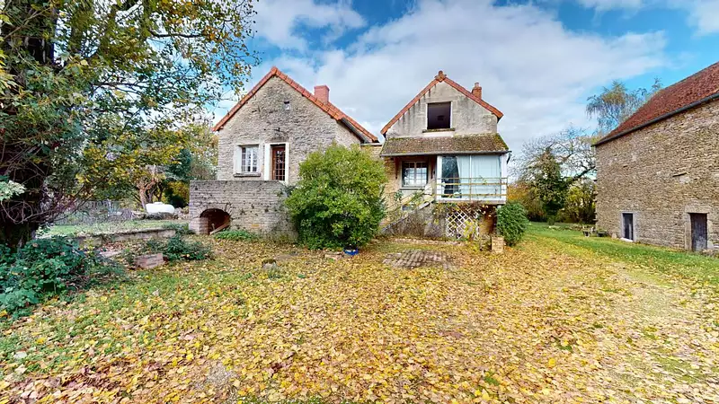 La seconde maison développe environ 100 m². Actuellement non habitable en raison de l'absence de chauffage, elle se compose de deux grandes pièces, d'une cuisine et d'un grenier. Elle dispose également de deux caves et d'une vaste grange idéale pour du stockage, un atelier ou un futur aménagement. Une rénovation complète permettra de tirer pleinement parti de cet espace.