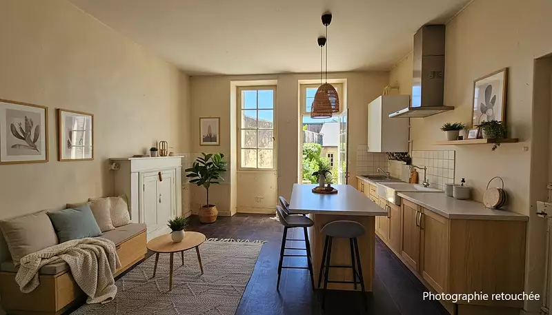 Charmante maison centre bourg avec son petit jardin cosy et sa dépendance. Celle-ci se compose au rez de chaussée d'un salon- séjour, cuisine pouvant être ouvert pour se retrouver autour d'un bel espace de 35 m² et donnant sur l'extérieur. Au 1er étage, un palier desservant 2 belles chambres avec parquet et cheminée, salle d'eau et un espace bureau. Au 2nd, totalement rénové en 2009, une très belle chambre de 35 m² (au sol) et une salle d'eau avec Wc. Cave gravillonnée. (6.25 % honoraires TTC à la charge de l'acquéreur.)