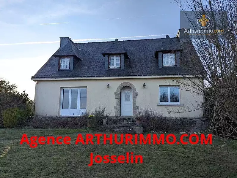Forges de lanouee maison 4 chambres avec terr. 3 500 m² a 3 mn de josselin, sur un beau parc de 3 500 m², maison de 146 m² hab., en campagne des forges de lanouee. au rez-de-chaussée, vie de plain-pied avec entrée sur couloir, cuisine aménagée et équipée, séjour avec cheminée et insert, salon, chambre, salle d'eau et toilettes. au 1er étage, couloir avec placard, 3 chambres, salle d'eau-wc, grenier. sous-sol complet comprenant palier, bureau, buanderie, garage et caves. hangar de 57m² possible pour camping-car et abris de jardin sur le terrain. fenêtres pvc double vitrage au rdc. fosse septique non conforme. ref 1642 -