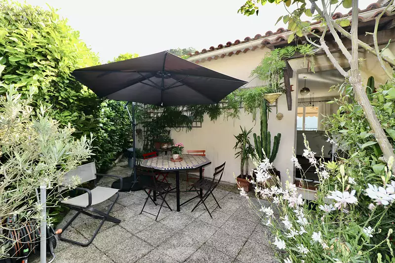 Très agréable maison jumelée d'un seul côté édifiée sur 2 niveaux de 160m2 (dont annexes : 1 garage, deux parkings, un espace cellier et un buanderie, 2 grandes caves complètent ce bien), située au calme et à 2 pas du charmant village de la Turbie.