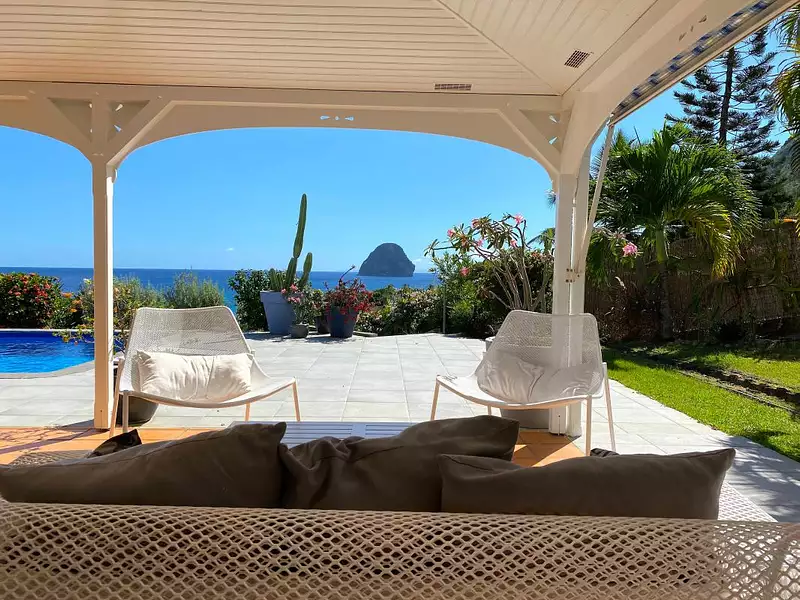 Une piscine pour se rafraîchir à tout moment, une excellente vue sur la mer et le célèbre Rocher du Diamant, une plage accessible à pied, et la proximité des commodités de la commune complètent les atouts exceptionnels de cette propriété.