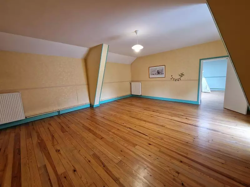 À l'étage, une mezzanine dessert deux grandes chambres d'environ 30 m² chacune, offrant de beaux volumes et de multiples possibilités d'aménagement.