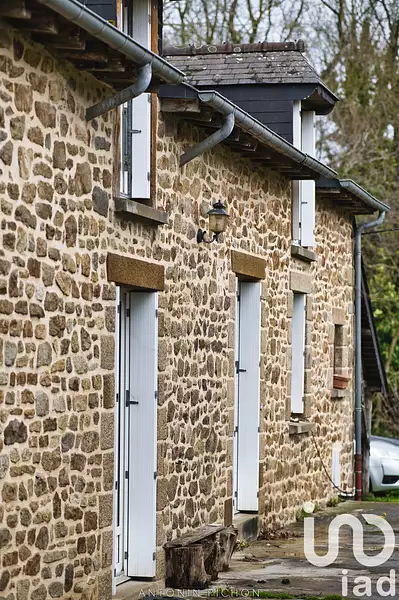 iad France - Bastien Lamarque vous propose: Longère en pierres d'une surface habitable de 140 m² dans un écrin de verdure de 6000m² à Saint-Symphorien (5 minutes axe Rennes Saint-Malo).