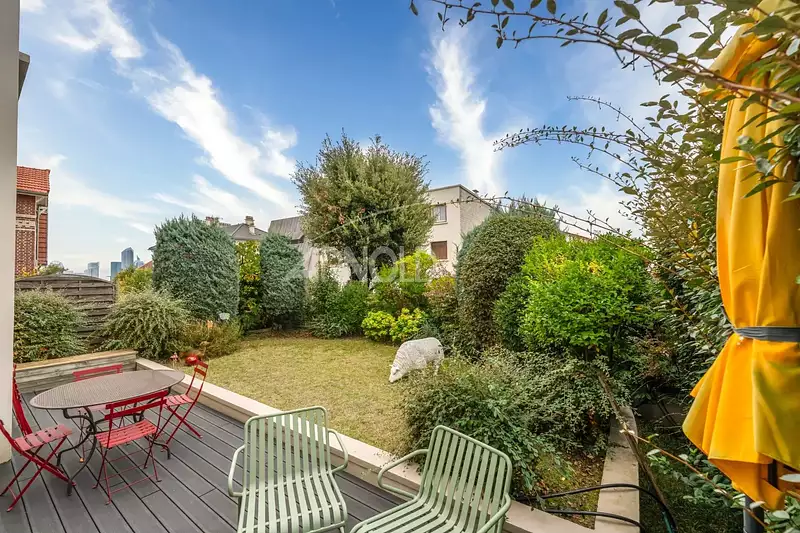 Traversante et exposée Sud/Est – Nord/Ouest, la maison profite d’une luminosité naturelle à toute heure de la journée. Son jardin arboré et ses terrasses vous invitent à la détente, tout en offrant une vue dégagée sur Paris et La Défense.
