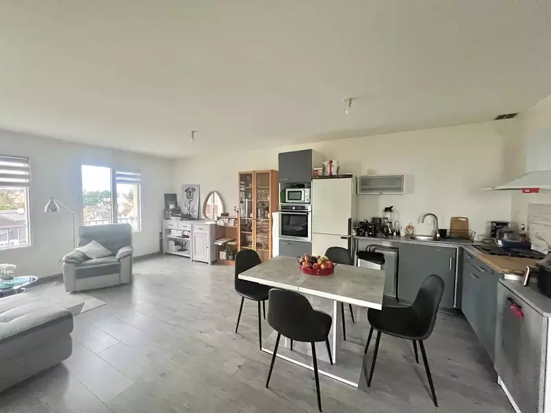Le premier étage, quant à lui, vous offre une magnifique pièce à vivre de 33 m² avec son coin cuisine, des toilettes, une salle d'eau, un placard au niveau du dégagement et deux chambres de belle taille (11 et 12 m²).