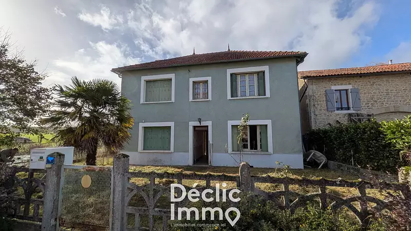 À quelques kilomètres de Champagne-Mouton, à proximité des commerces, des écoles et du collège, dans un bourg charentais, maison à rénover avec gros potentiel. La maison se compose, au rez-de-chaussée, d'une cuisine, d'un salon et d'une salle à manger, avec la possibilité d'ouvrir cet espace pour créer une pièce de vie d'environ 50 mètres carrés. Un cellier et un WC complètent ce niveau. À l'étage, quatre grandes chambres et une salle de bain. À l'arrière, un grand garage permettant le stockage et le stationnement de véhicules. Sous ce garage se trouve également une cave. L'ensemble est implanté sur un terrain de plus de 1000 mètres carrés, clos et arboré. Des travaux d'isolation et d'aménagement sont à prévoir pour cette maison familiale au gros potentiel, raccordée au tout-à-l'égout. Réf 2755. DECLIC IMMO 16 DPE : E Les informations sur les risques auxquels ce bien est exposé sont disponibles sur le site Géorisques : www.georisques.gouv.fr. Annonce proposée et rédigée sous la responsabilité éditoriale de CLEMENTE-MILAN Laititia - 07 48 77 78 34 - - Agent Commercial RSAC N° 910 717 297 Ville du greffe : ANGOULEME Honoraires : 5 000 € TTC (7,69 %) inclus charge acquéreur (65 000 € hors honoraires) Prix moyens des énergies indexés au 01/01/2021 (abonnement compris). Montant estimé des dépenses annuelles d'énergie pour un usage standard : entre 2 600 € et 3 560 € par an.