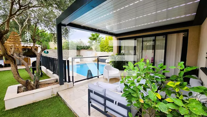 Dès l'entrée, vous serez séduit par son ambiance chaleureuse et sa lumière naturelle. Elle se compose d'une cuisine ouverte entièrement aménagée avec un cellier, donnant sur un spacieux séjour qui s'ouvre sur une terrasse avec pergola bioclimatique, idéale pour profiter de l'extérieur toute l'année. Au rez-de-chaussée, vous trouverez une chambre avec placard, ainsi qu'un WC avec lave-mains. Le système de chauffage, quant à lui, permet de choisir entre la climatisation réversible ou un poêle à granulés pour un confort optimal.