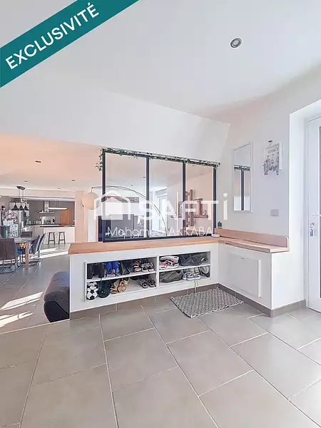 Dès l’entrée, vous découvrirez un vaste espace de vie comprenant un lumineux salon-séjour ouvert sur une cuisine équipée, moderne et fonctionnelle. Celui-ci s’ouvre également sur une grande terrasse agréable, idéale pour profiter des repas en extérieur et des beaux jours.