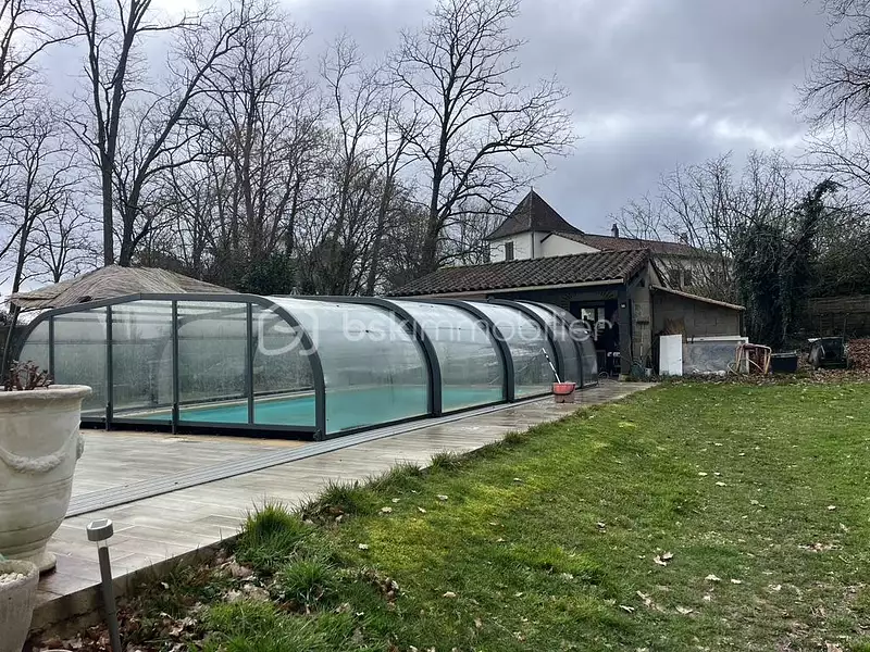 L'extérieur vous ravira avec sa belle piscine, 8x4 couverte par un dôme. Un car-port pour deux voitures, un atelier indépendant.