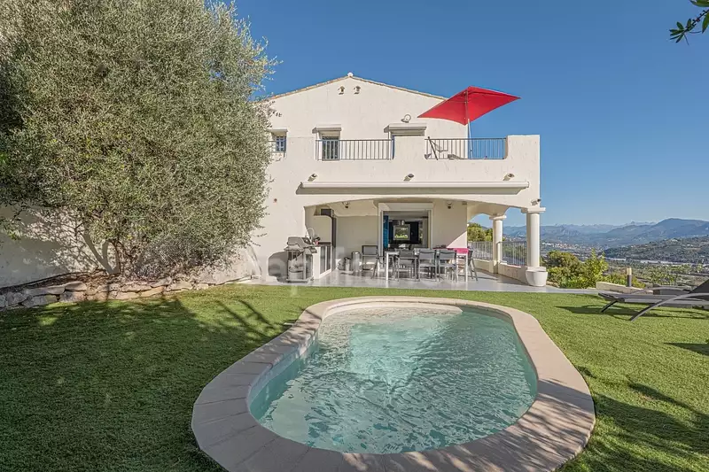 Édifiée sur une parcelle d'environ 500 m², cette villa bénéficie d'une vue panoramique imprenable sur la plaine du Var, la mer et les montagnes. Son exposition et son emplacement au sein du lotissement garantissent calme et intimité. Reliée au tout-à-l'égout, elle ne nécessite aucun travaux : vous n'avez plus qu'à poser vos valises.