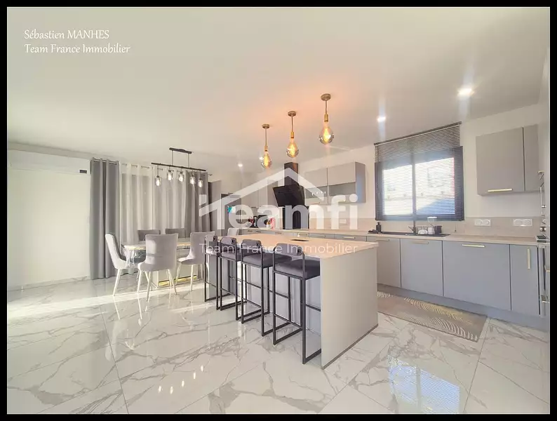 Maison entièrement carrelée, finitions irréprochables, matériaux de qualité, chauffage au sol par pompe à chaleur, excellente performance énergétique, domotique intégrée, système de vidéosurveillance, terrasse avec vue dégagée, cour enrobée, parcelle entièrement constructible.