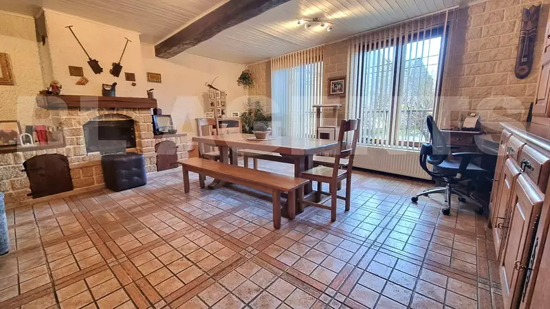 A l'étage palier, pièce de vie de plus de 36m2, cuisine, arrière cuisine, wc avec lave-mains.