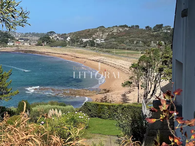 Nichée à proximité du fameux quartier de Lan Kerellec, cette propriété, en parpaings sous ardoises avec des belles pierres apparentes, est située à deux pas des plages et des commerces.