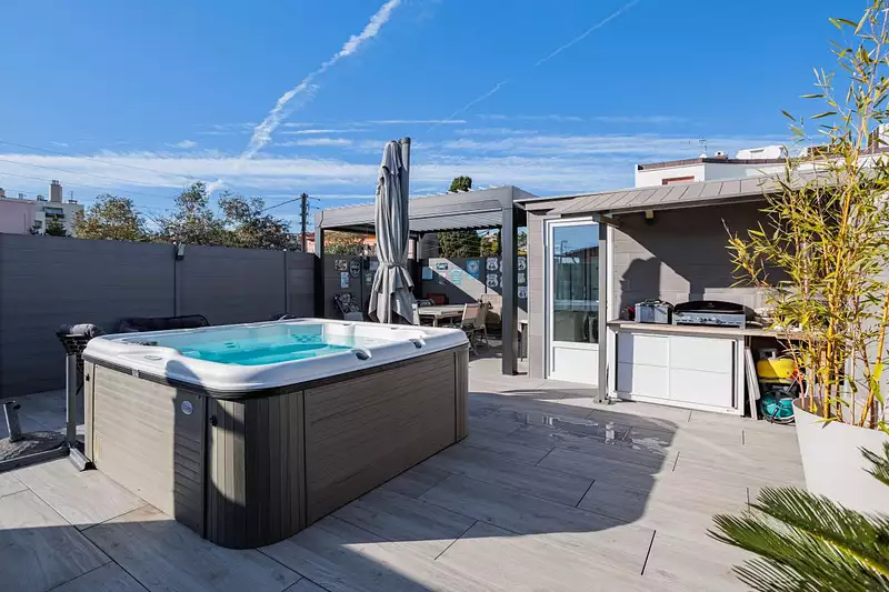 Charmante maison de ville de 138,85 m², idéalement située proche des plages. En bon état, elle offre 4 chambres, un living lumineux, une véranda de 21 m², un appartement indépendant de 2 pièces et un atelier pouvant être transformé en studio. Toit-terrasse de 60 m² entièrement aménagé, jacuzzi, salon extérieur, pergolas bio climatique, cuisine d'été et toilettes avec aperçu mer,