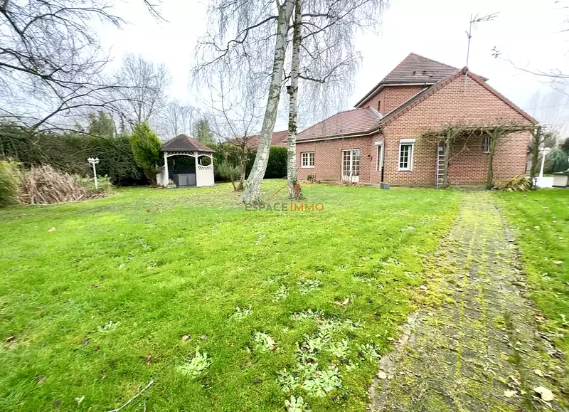 Le jardin est un véritable hâvre de paix au milieu des champs, la très grande terrasse, à l'abri des regards, équipée d'un store banne électrique et d'un très beau barbecue permettra de très belles soirées d'été. Découvrez également, le kiosque (excellent endroit pour un spa!), le joli bassin et un abri de jardin.