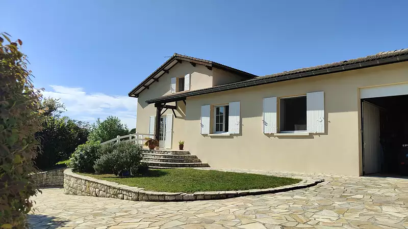 Sur les hauteurs de La Réole, dans un quartier résidentiel, découvrez cette maison traditionnelle construite en 1978. Ce bien vous offrira en rdc: une entrée avec placards, un séjour très lumineux 45 m2 avec plafond cathédrale, cheminée, une cuisine équipée séparée, dégagement, wc, salle de bain, 2 chambres et 3ème servant aujourd'hui de dressing, un cellier avec escalier pour descendre en rez de jardin avec garage, atelier, buanderie. Et à l'étage une mezzanine et une chambre. Le tout dans un très agréable jardin paysagé avec une très belle vue.