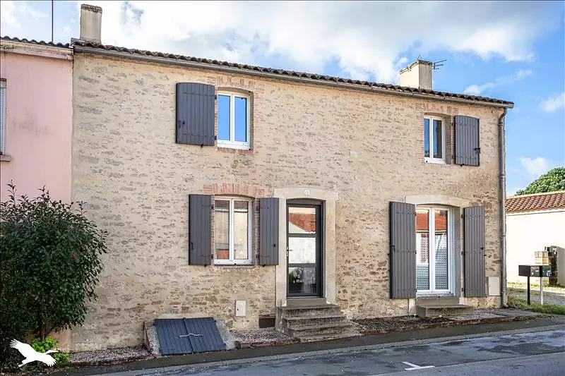 Maison de bourg en pierre comprenant au RDC: un salon-séjour, une cuisine sapcieuse, une buanderie, une chambre, une salle de bain avec baignoire et douche, WC. A l'étage: 3 belles chambres, une salle de bain et WC. Un jardin clos et une dépendance de 24 m² complètent l'ensemble. Proposition d'aménagement virtuel non contractuelle en dernière photo.