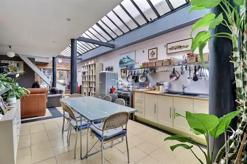 Véritable loft issu d'un ancien atelier d'artiste de 139 m² réhabilité. Un bien rare offrant de beaux volumes et une configuration idéale pour un usage mixte habitation / activité artistique ou indépendante, ou même une location d'un T2.