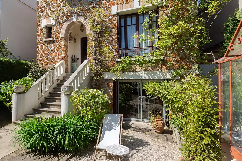 COMPROMIS EN COURS .Saint Cloud Montretout, Marché des Avelines Maison ancienne de caractère, construite en 1927 sans aucun vis-à-vis. En double exposition Est Ouest et très lumineuse. Elle comprend.: Au rez-de-chaussée, un séjour double avec une cheminée et un wc invité. En rez-de-jardin et ouvrant directement sur celui-ci , un bel espace comprenant une salle à manger avec un sol en pierre de Bourgogne et une cuisine équipée, salle d’eau et wc séparé. Une Grande cave et une buanderie complètent ce niveau. À l’étage, deux chambres, une salle de bains et un espace de rangement. Les combles comprennent deux espaces nuits parfaitement adaptés à un espace parents avec bureau ou bien pour deux enfants avec salle de jeux ou 2 espaces nuits. Disposant de son propre espace lumineux et bien délimité. Le charme de l’ancien A deux pas des commerces, écoles et gare.
