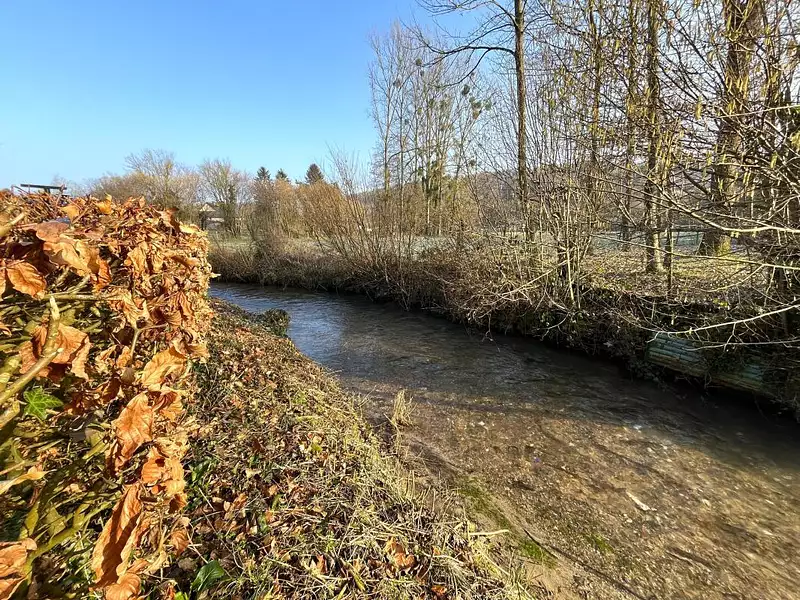 Le terrain, bordé par la rivière, est parfait pour les amoureux de la nature et offre un cadre unique.